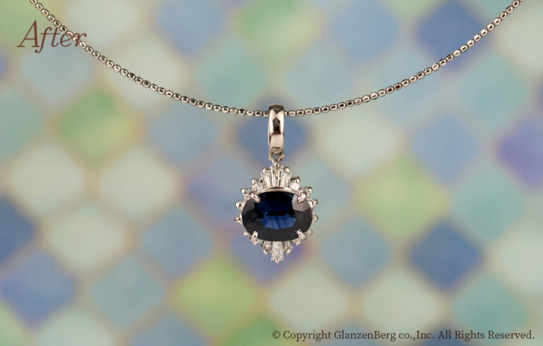 サファイアのリングを、元のデザインを生かしたペンダントトップにリメイクしました。お客様のアイデアで石 […] -