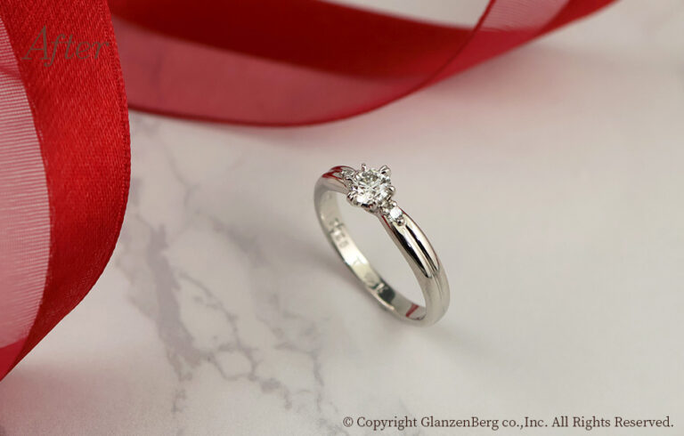 デザインが古くなりあまり着用する機会の無かったアメジストリングを、グランベルクオリジナルブランド「GLück(グルック)」のデザインにてリメイクしました。カボションカットのアメジストの高さを抑えフクリン留めにした事で、引っ掛かりのない、シンプルで日常使いにぴったりなかわいらしいリングになりました。