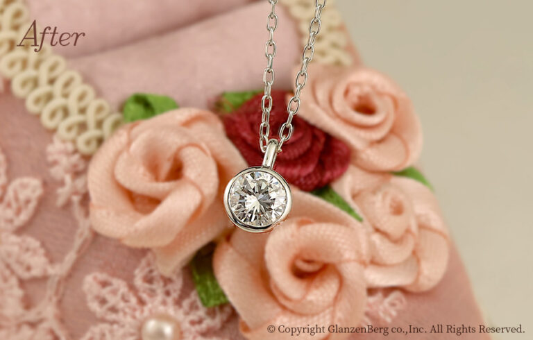 2本のブレスレットのチャームを利用して1本のロングネックレスにリメイクしました。様々なカラーストーンのチャームをランダムに、かつバランスよく配置しました。美しく光るチェーンもお客様自らお選びいただき、長さにもこだわり縁起の良い末広がりの88cmに仕立てました。そのままロングでも、2重にしてもお使いいただけます。