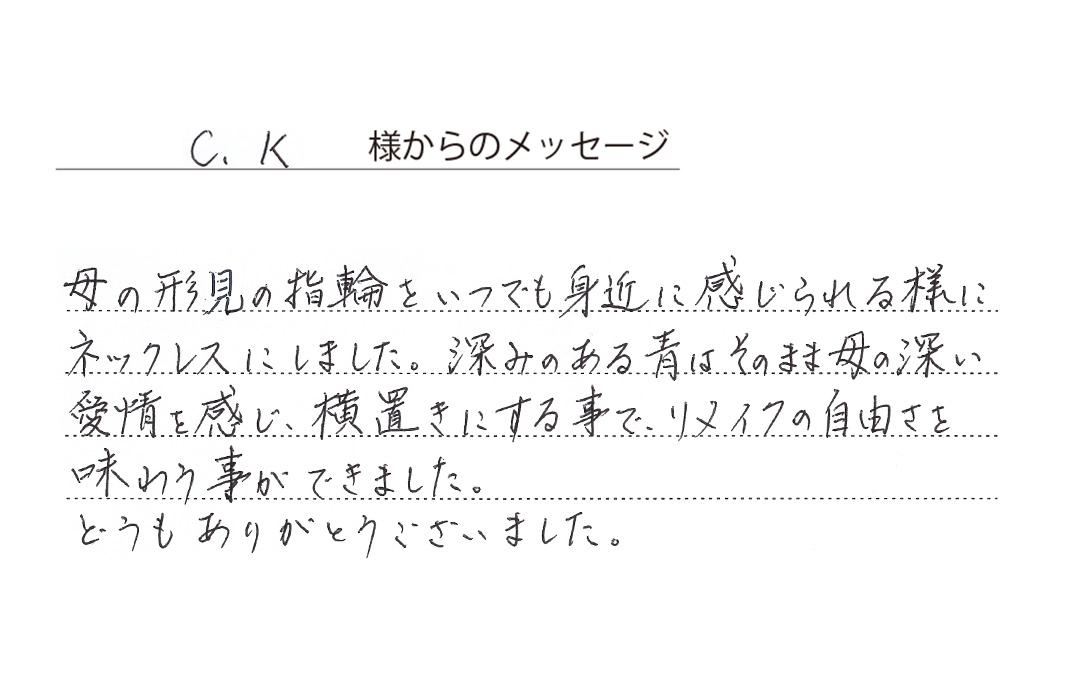 ※残った地金をお取引(地金買取り)し、加工代(製作代)に充当しました。