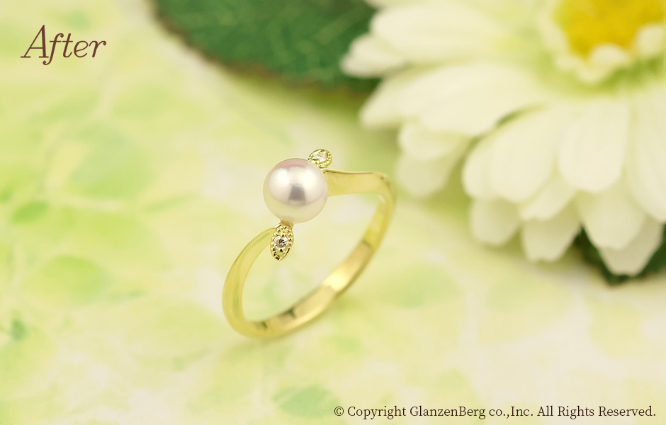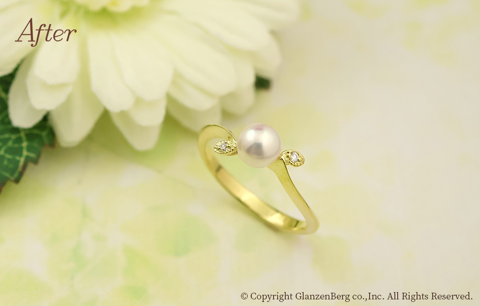 作品No.3218 No.3218 パールのチャームをリングにリメイク 投稿日 2026年1月2日 更新日 2025年12月22日 著者 グランベルク タグ K18YG タグ 6月 タグ 誕生石 タグ 18金イエローゴールド タグ 3218 After After After Before おばあ様から受け継いだパールのチャームをリングにリメイクしました。約5.5mmの可愛らしいベビーパールの丸みが際立つデザインです。小粒のダイヤモンドをあしらったリーフモチーフがアクセントのきいた作品です。 ジュエリーリメイクについてのご相談はこちらから